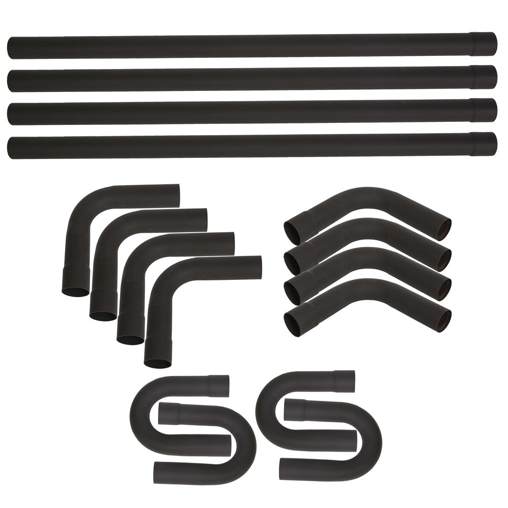 Description These exhaust bend kits include enough tubing to allow you to run your own exhaust system the way you want it. Each pipe is expanded on one end to allow easy installation. Tubing has a painted, anti-rust coated finish. Feature Mandrel Bent: Yes Catalytic Converter(s) Included: No Single or Dual: Dual OE Part # 91013822 Exhaust System Type:...